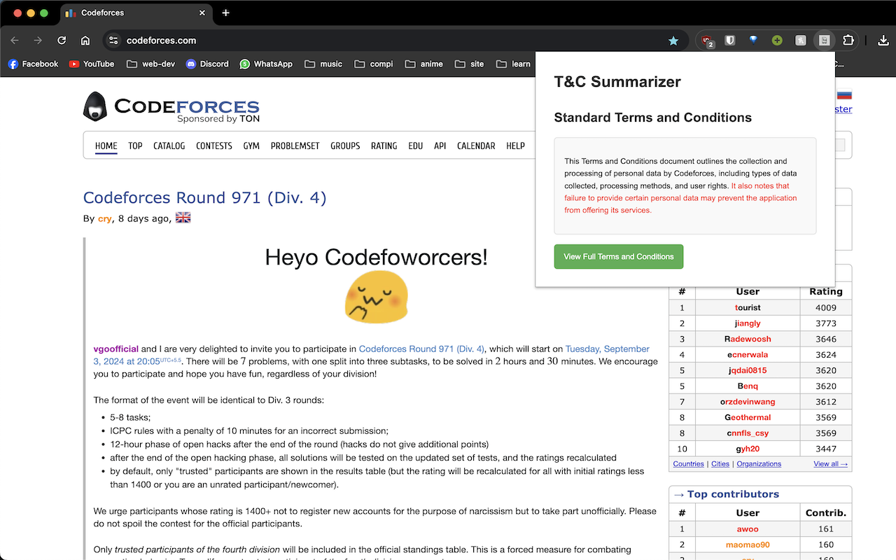T&C Summarizer is the ideal tool for anyone looking to simplify and expedite the process of understanding legal agreements online. By offering concise summaries and maintaining user privacy, this extension enhances transparency and makes navigating digital terms more manageable.