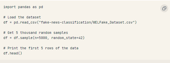 Prompt: “Act as a professional Data Scientist and write a Python code for loading five thousand random samples from the dataset for the above project. ”