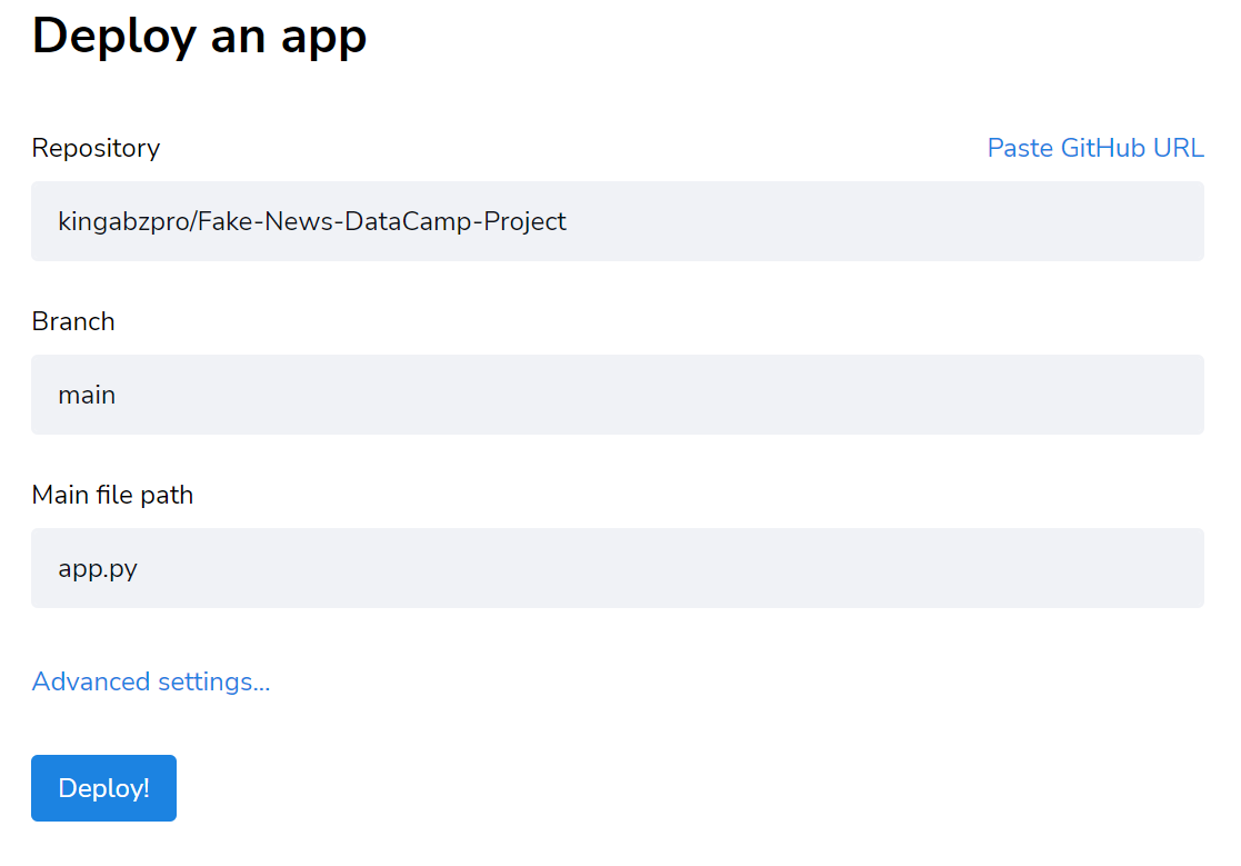 That’s it. Our app is deployed and available for the public at Streamlit (fake-news-detector.streamlit.app).