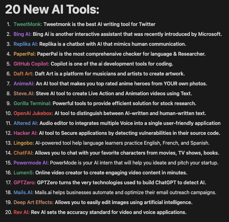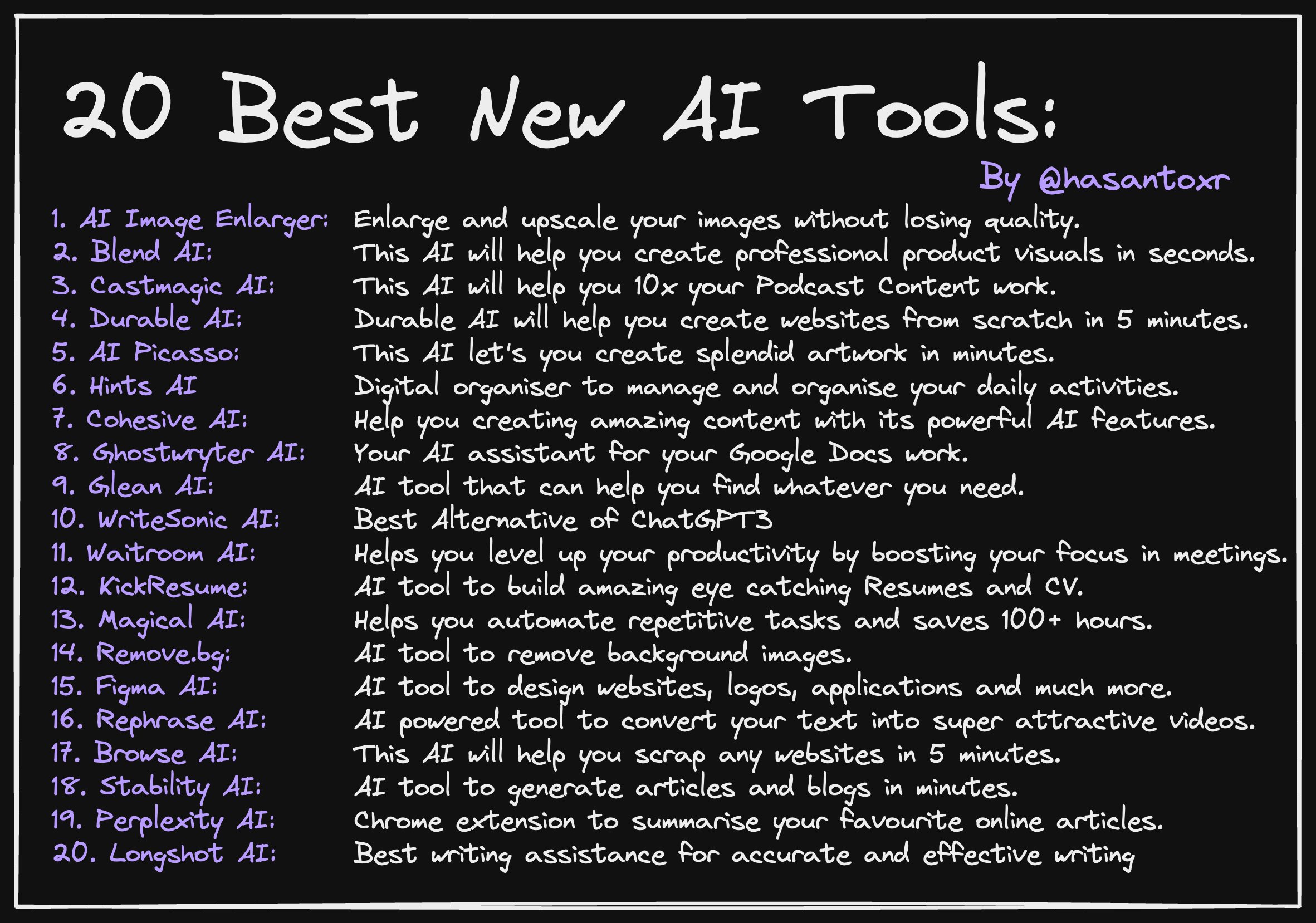 60 new AI tools as an alternative or useful addition to the functions of CHATGPT