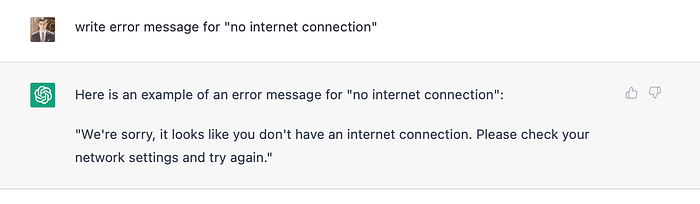 Small things like error and success messages can have a huge impact on user experience. ChatGPT can be used not only for large text blocks such as product descriptions but also for microcopy (small bites of text such as success and error messages).
