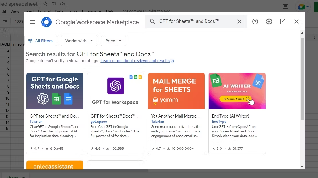 How to Add the GPT for Sheets and Docs Extension to Google Sheets
