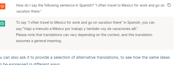 In this article, we’ve used examples that involve prompting ChatGPT in English to practice Spanish. But ChatGPT can respond in just about any language, so you could just as well, for example, prompt it in Portuguese to help you with your English.