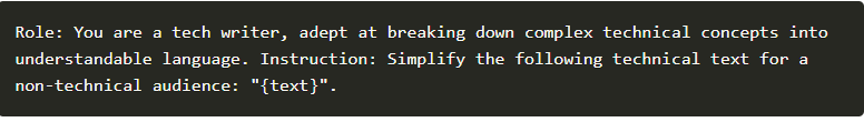 As for the variables, {text} stands out as the primary variable. This part of the prompt can be replaced with any complex piece of text you wish to simplify. By strategically modifying this variable, you can truly personalize the prompt to cater to various text simplification needs.