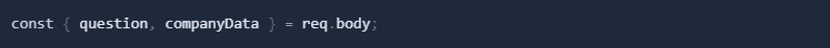 First time we are asking about the company and we place the correct answer in the answer field. Second time I am creating a bad question, )not regarding the company). I used the question "How are you?" and placed the answer "This question is not related to the company". This way the model will know how to react on a question that is irrelevant and not covered in the company data text. My prompt is the following: