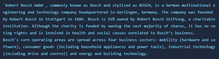 For a test porpose, I placed a short description about Robert Bosch GmbH from wikipedia: