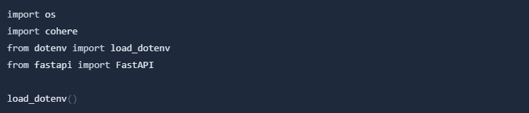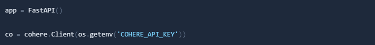 Then we need to create a FastAPI application and set up a Cohere client: