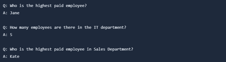 Now we can test our application. Let's try to ask some questions: