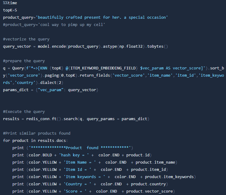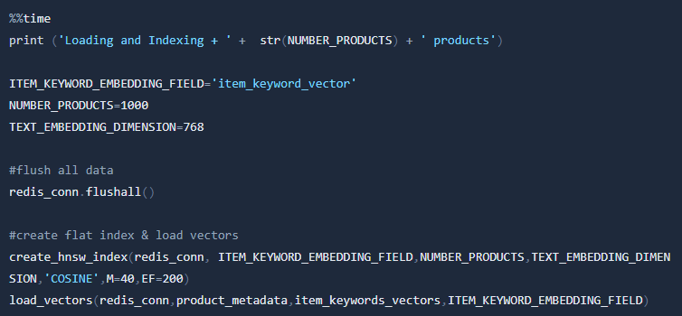 Now we have 1000 embeddings for the 1000 products. Next, we will define 3 utility functions. One for loading the product data and two for creating the index on Vector fields.