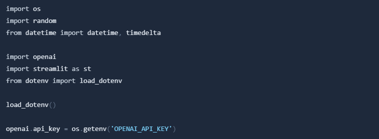 Last thing we need to do is to create main.py file, import all necessary libraries and load our API key from .env file: