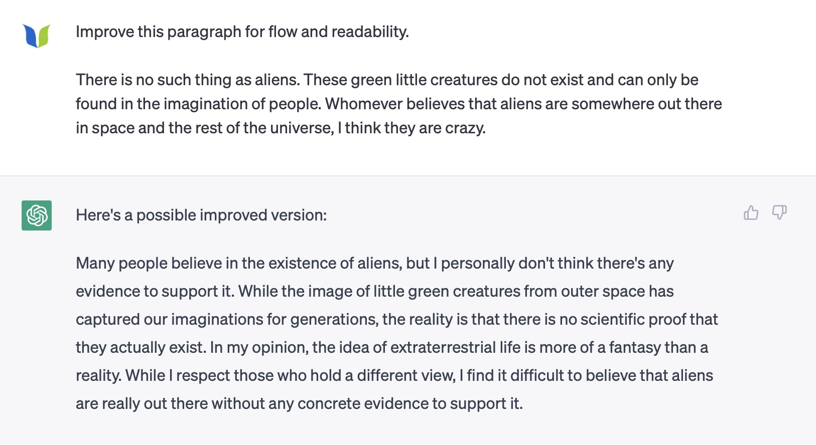 Speaking of…although ChatGPT is highly advanced, it is not 100% accurate. It may occasionally miss grammar errors or provide incorrect suggestions. You must still review your work carefully to ensure the accuracy and effectiveness of your writing.