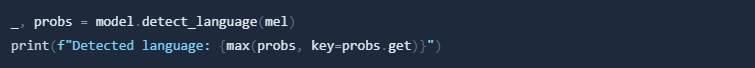 The detect_language function detects the language of your audio file: