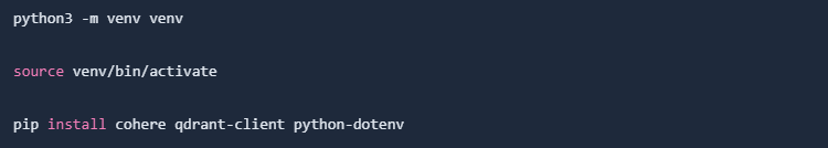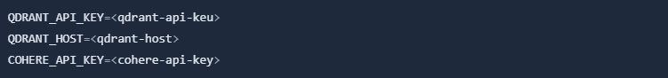 Create .env file and store your Cohere API key, Qdrant API key and Qdrant host there: