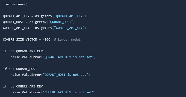 size=COHERE_SIZE_VECTOR, distance=models.Distance.COSINE