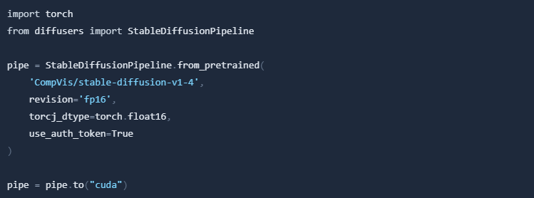 Now we will use Stable Diffusion for generating image from text. Let's load model.
