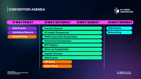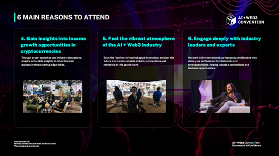 AI + Web3 Convention will be held on 18-19 May, 2024, at the exhibition Hall 4, Brisbane Convention & Exhibition Centre, Australia, which is a gathering that brings together leading experts and innovators from around the globe in the fields of artificial intelligence and decentralised Web3 technologies. This convention is dedicated to exploring the latest advancements and trends in AI and Web3. Attendees will have the opportunity to share their latest research findings, project experiences, and cutting-edge insights in these domains.