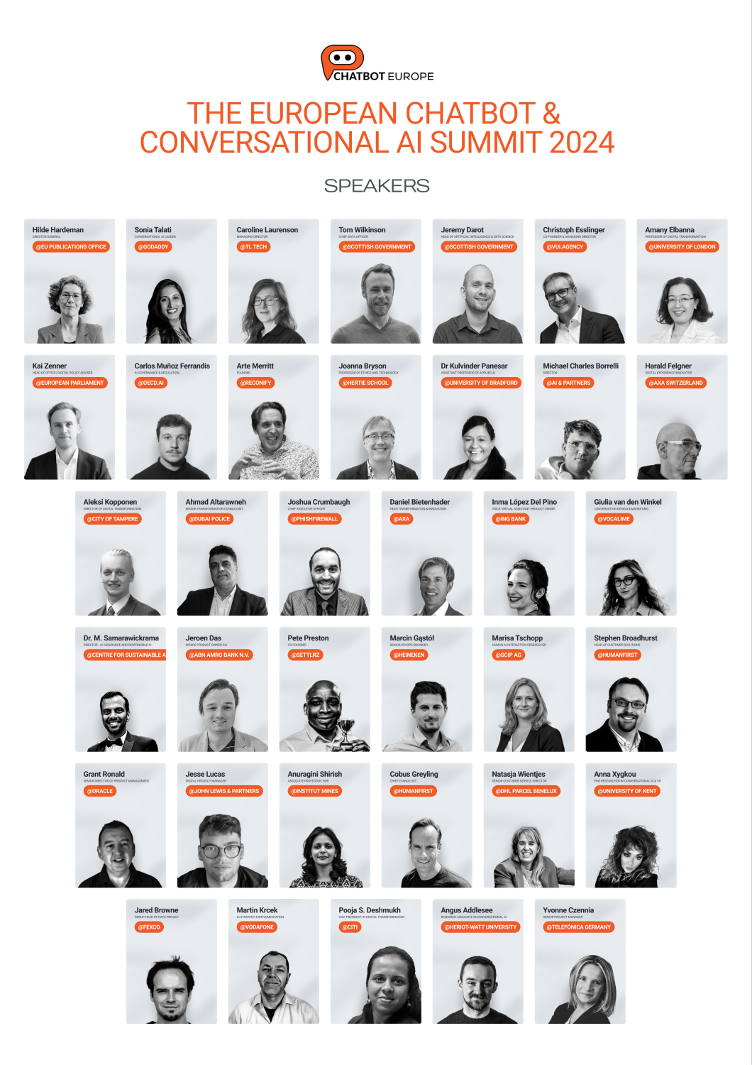 We are proud to host professionals from reputable companies and organizations, including leaders from the European Union, The Scottish Government, European Parliament, Hugging Face, Dubai Police HQ, Thales, Citi, Telefónica Germany, AXA, ING Bank, The HEINEKEN Company, Vodafone, Oracle, GoDaddy, and many more. These experts represent a diverse array of industries and are at the forefront of shaping the future of Conversational AI, making this Summit a truly remarkable event.